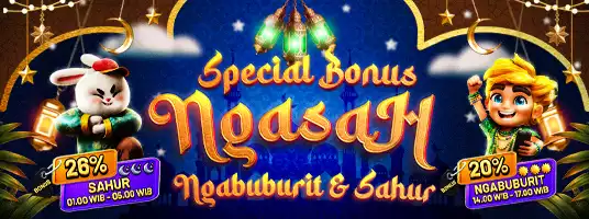 - Bonus deposit 26% Minimal Rp100.000, berlaku 01.00 WIB - 05.00 WIB (SAHUR).